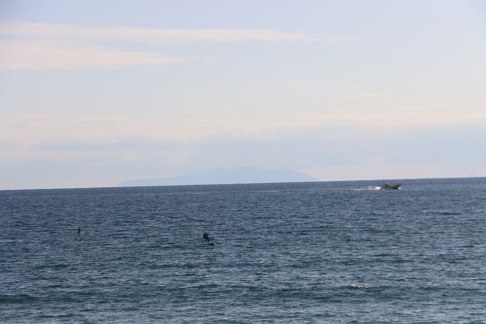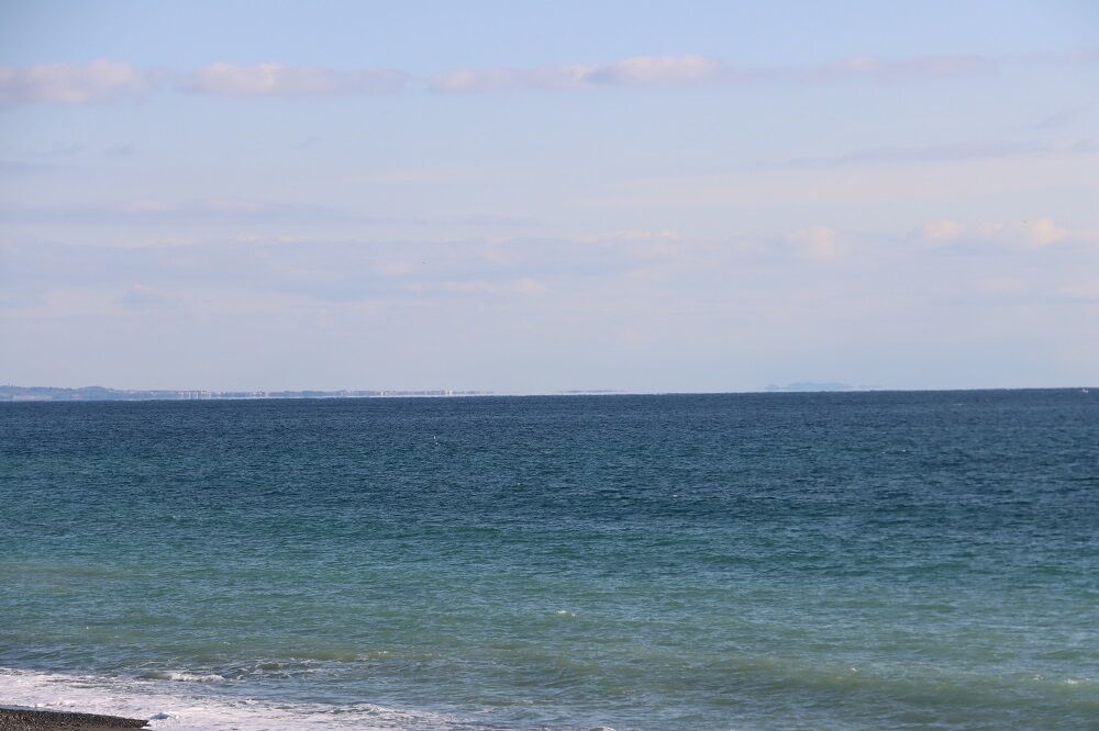 写真中央付近が伊豆大島です。少し靄がかかっていて雲も見られますが、目視で確認することが出来ました。