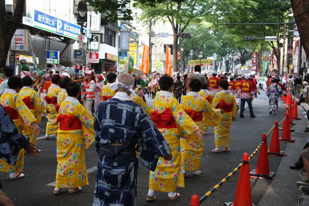 今年は「踊り連」64組、計およそ2400人の踊り手が参加し、「おはら節」・「渋谷音頭」・「ハンヤ節」の3曲に合わせて躍りパフォーマンスが繰り広げられました。