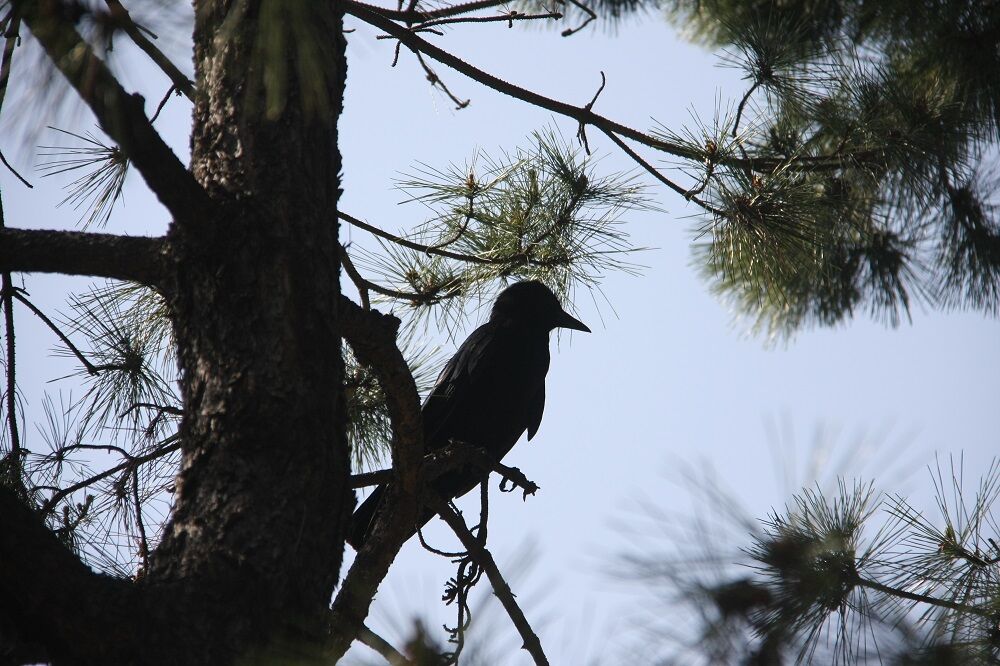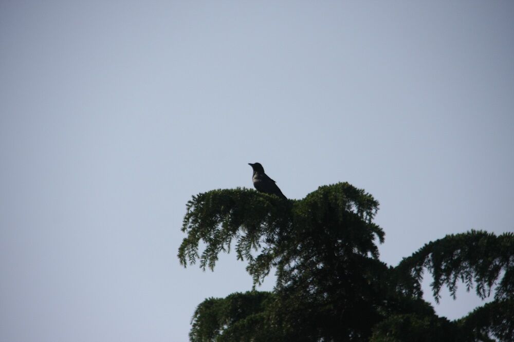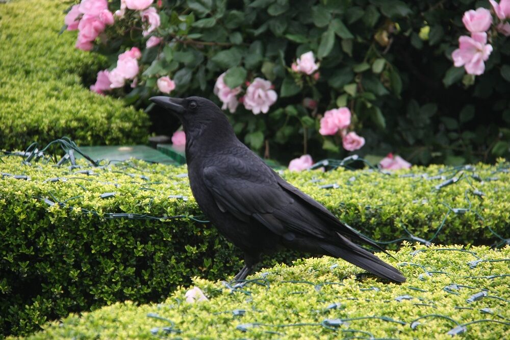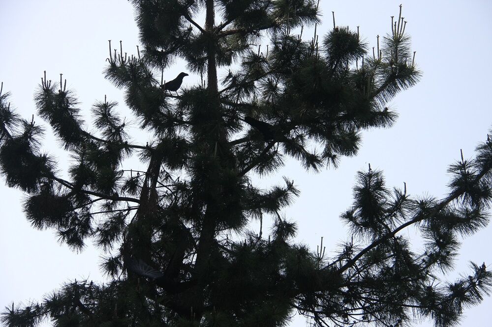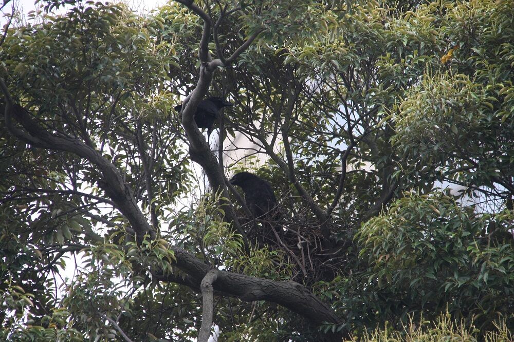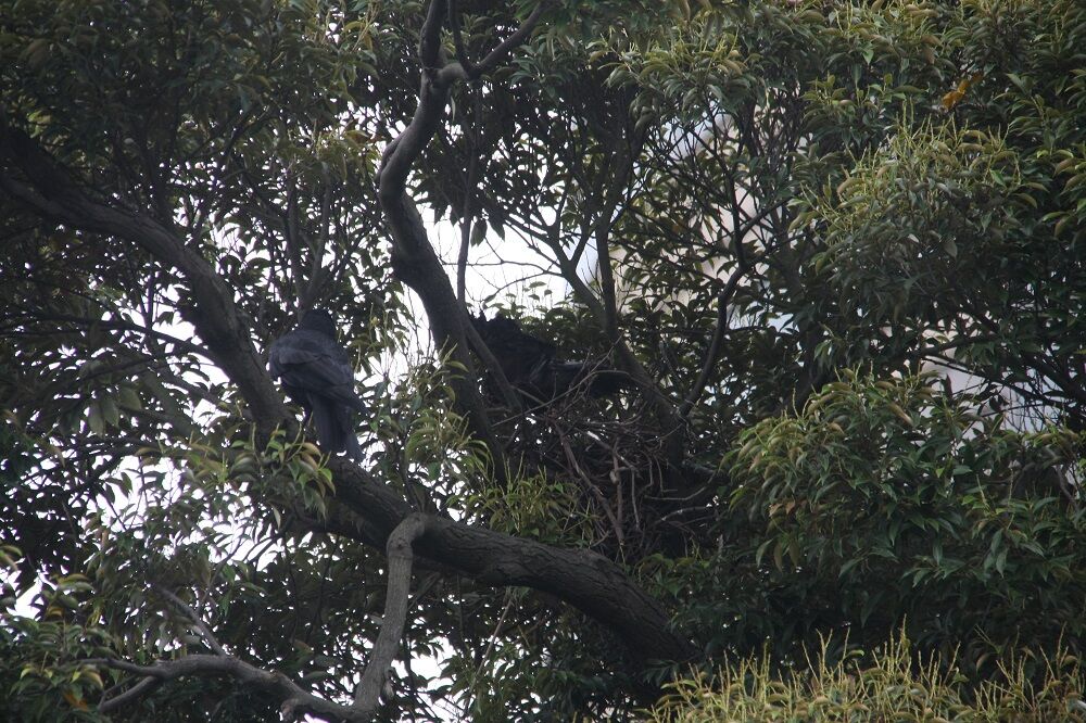 一方親ガラスは早く巣の外へ出て飛ぶよう促している(発破をかけている)ようにも見えます。