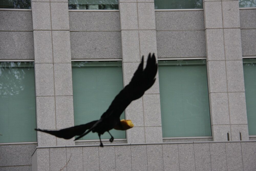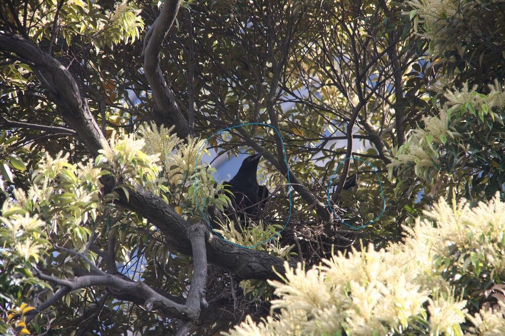羽を動かす動作を繰り返しているうちに親ガラスがやって来ました。