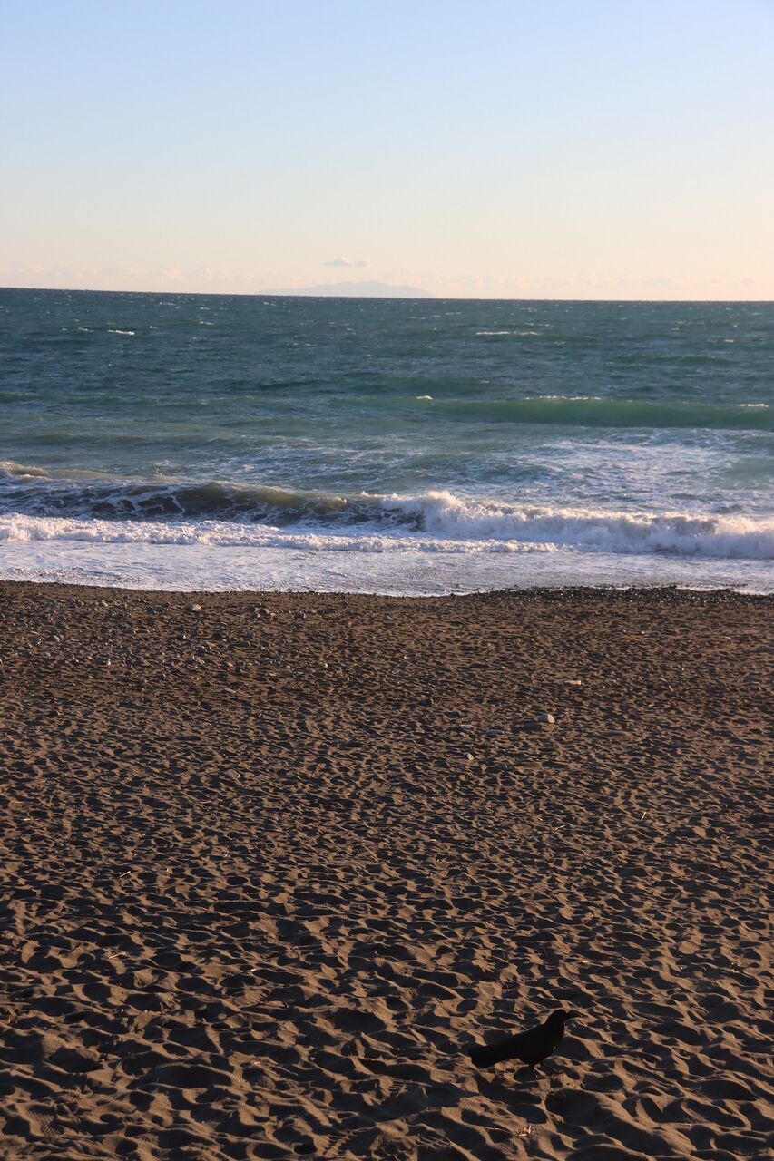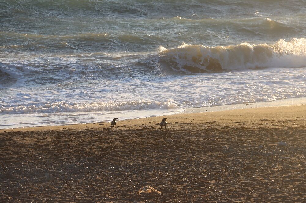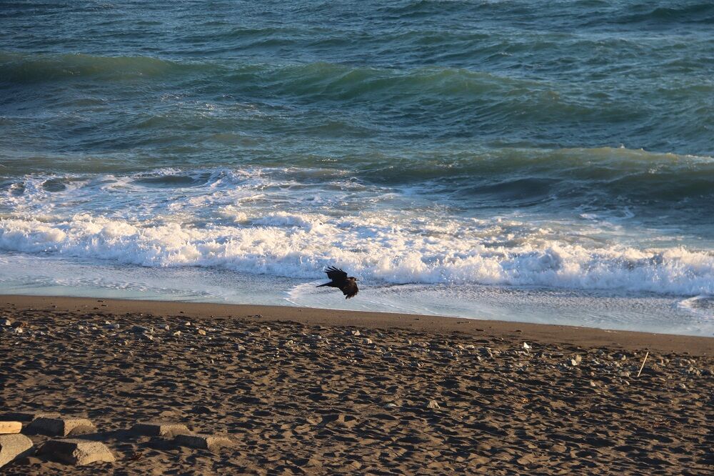 じっと海を眺めたり、砂浜をウロウロしたり、その周辺を飛んでいます。
