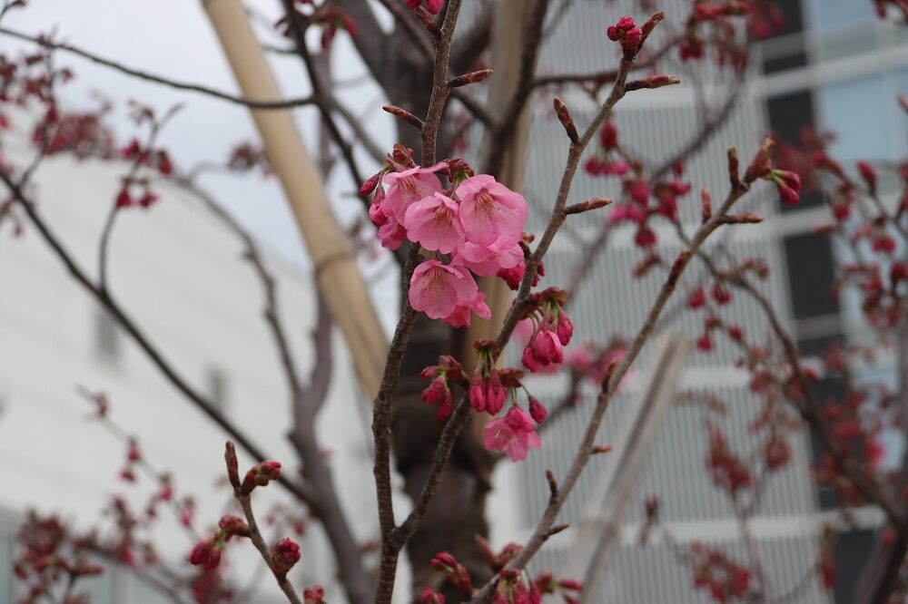 横浜では今週の3連休最終日となった3月21日にソメイヨシノの開花宣言がありましたが、ヨコハマヒザクラも開花していました。