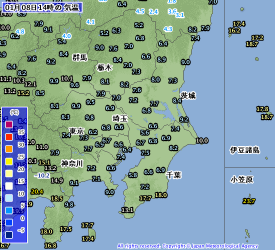 (2020年1月8日:気象庁ホームページ・アメダスより引用)