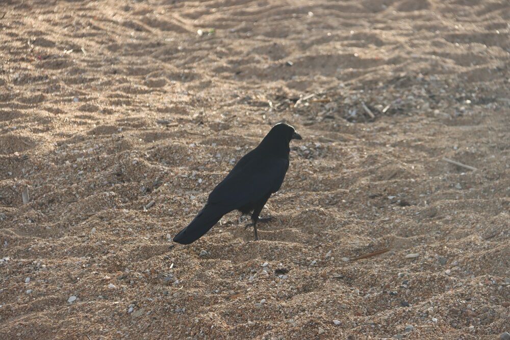 海を眺めていたと思ったら、今度は砂浜の方へ飛び、歩き回っていました。
