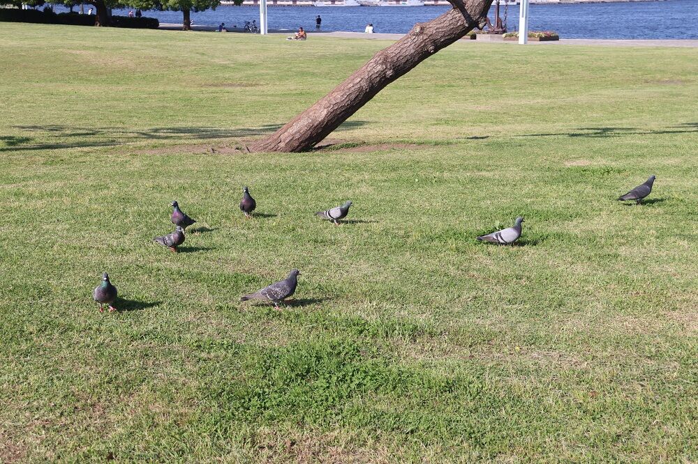 写真を撮影した日もキジバトのグループがソーシャルディスタンス?を保ちながらおそと時間を過ごしているのが印象的でした。