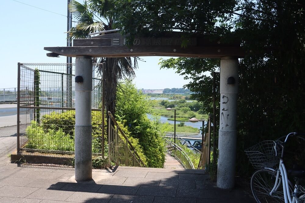 下溝駅で下車し、三段の滝展望広場入口(新磯橋)の方へ向かいます。