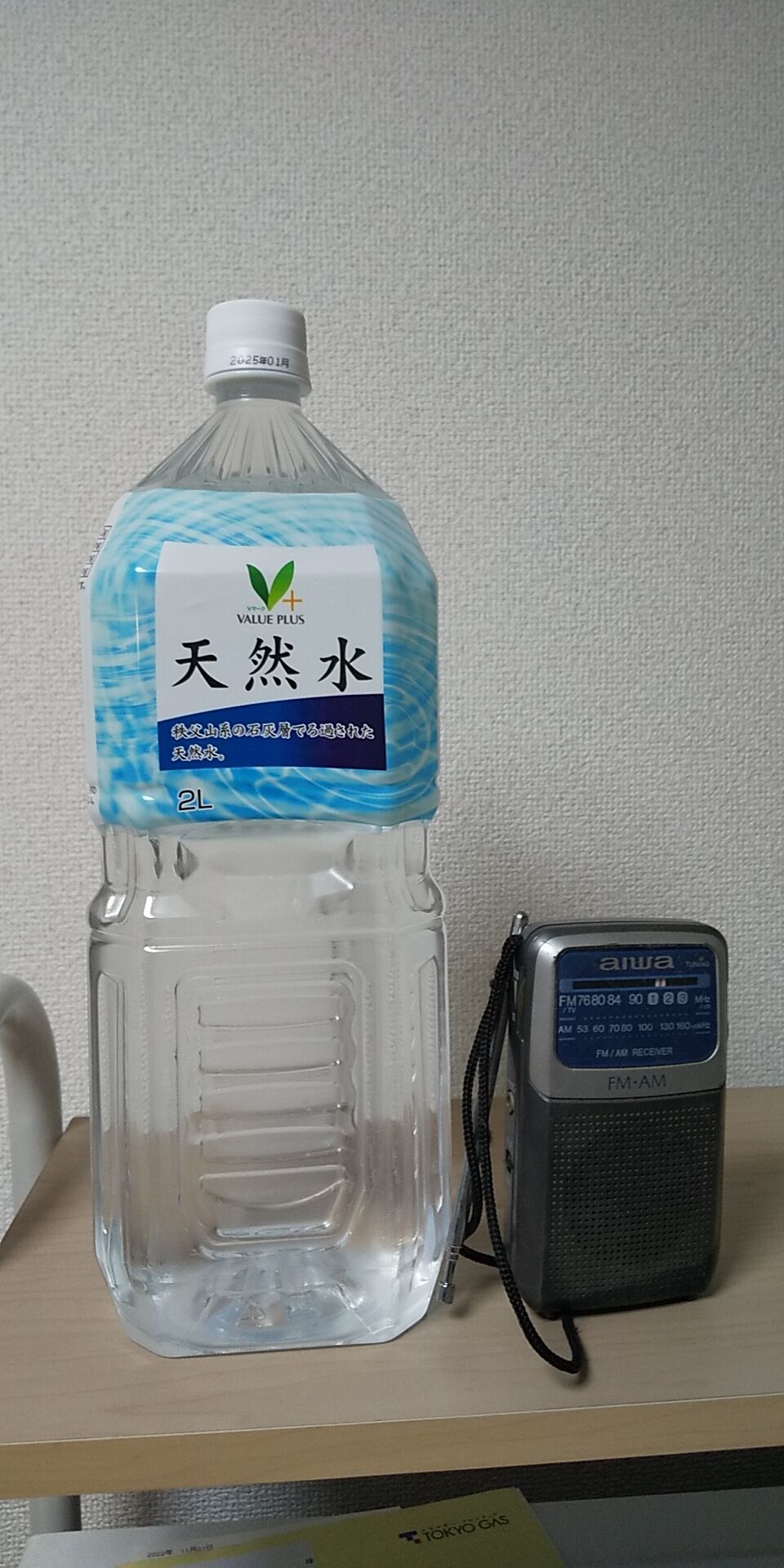 29日夜の地震の翌日、ラジオの動作と備蓄用の水を点検しました。
