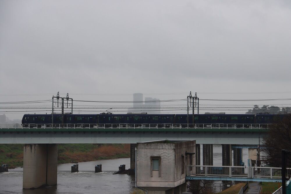 開業初日は残念ながら生憎の雨模様でしたが、東急東横線多摩川橋梁を走る相鉄車を見ると、直通運転が始まったことを改めて実感します。