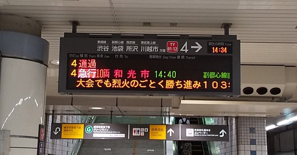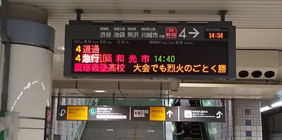 写真は優勝が決まる数時間前のものですが、東急の日吉駅の発車案内板には慶応を応援するメッセージが流れていて、話題を呼んでいました。