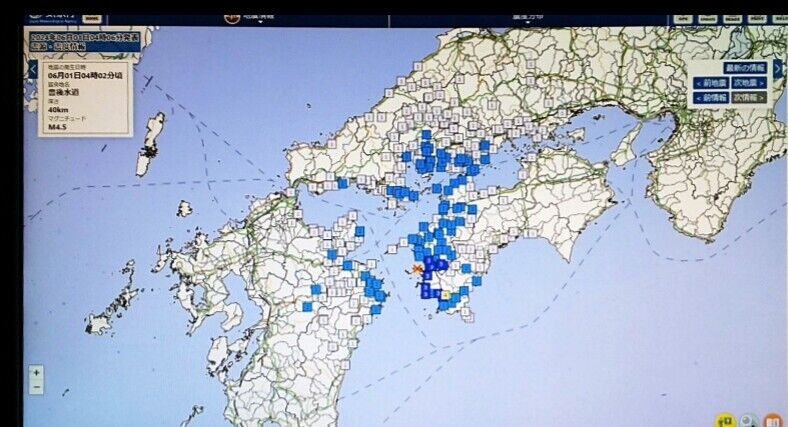 昨日6月1日04時02分頃、四国地方でやや強い地震がありました。