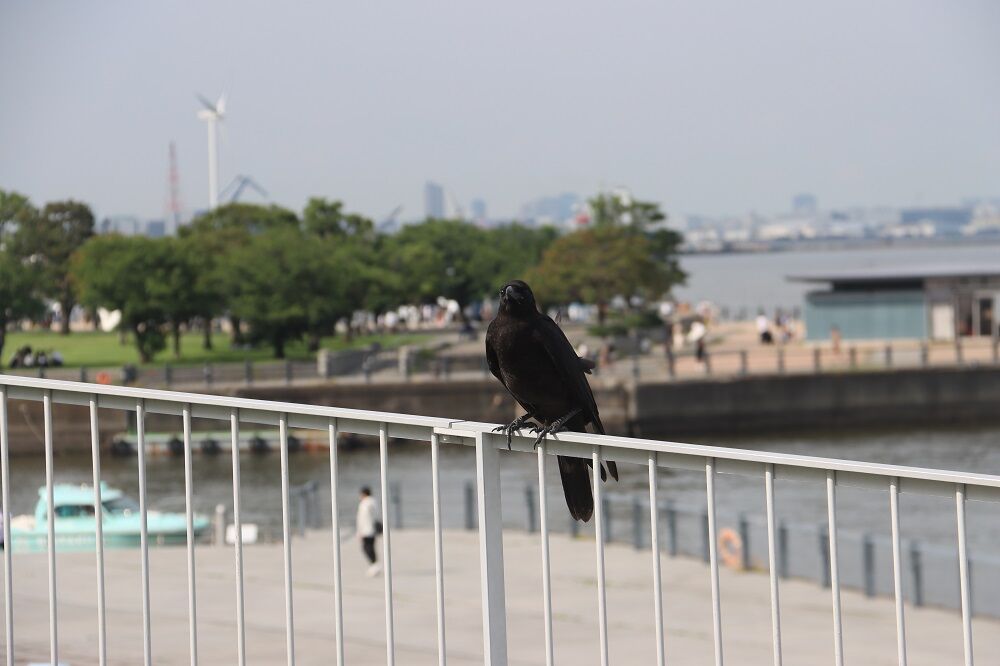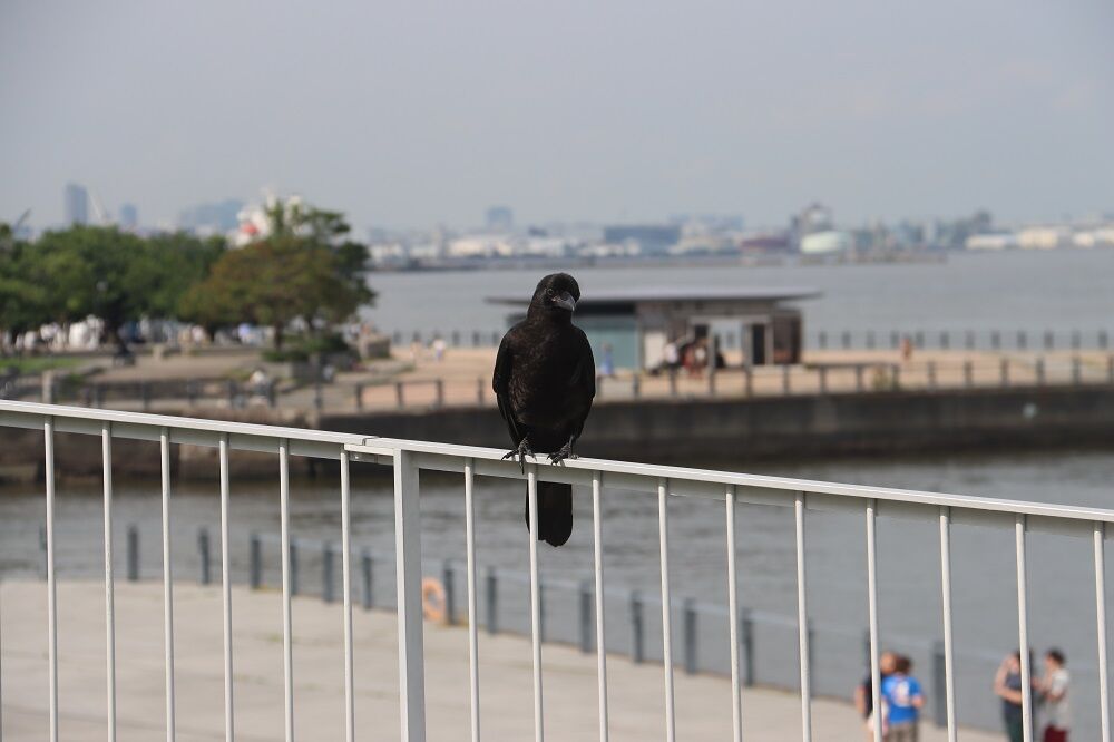 横浜・新港地区の象の鼻パーク付近が縄張りと思われるハシボソガラスの雛。