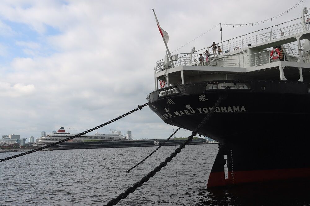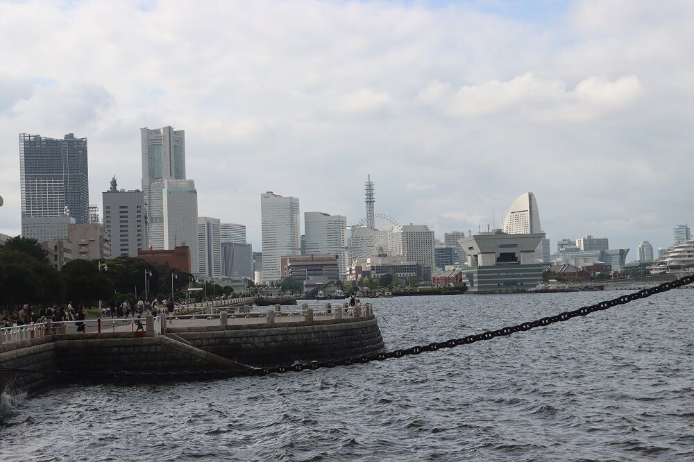 大さん橋や赤レンガ倉庫、ランドマークタワーやコスモワールドの観覧車が見えます。
