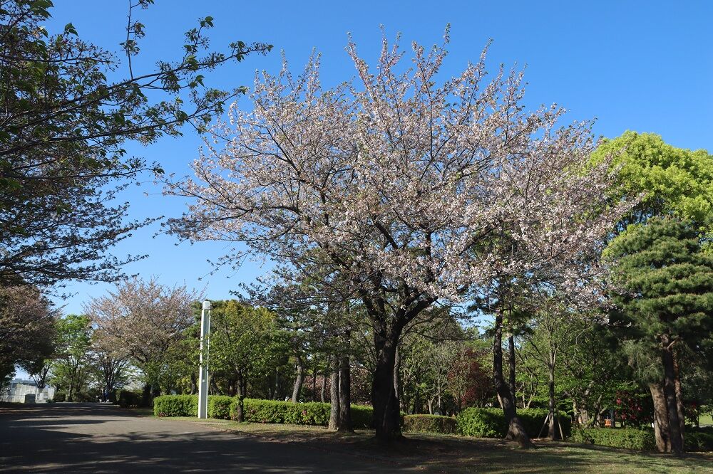 横浜・臨港パークの芝生広場のソメイヨシノ。