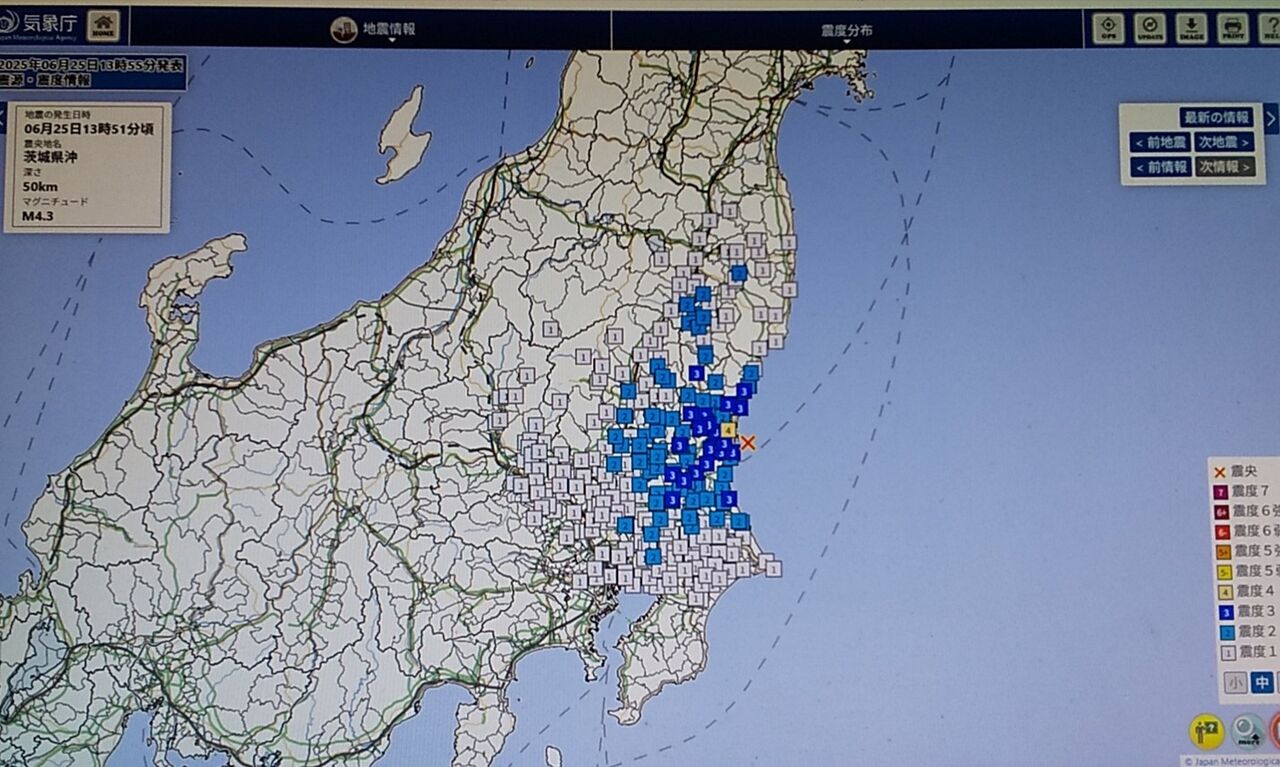 昨日6月25日、茨城県沖を震源とする地震がありました。