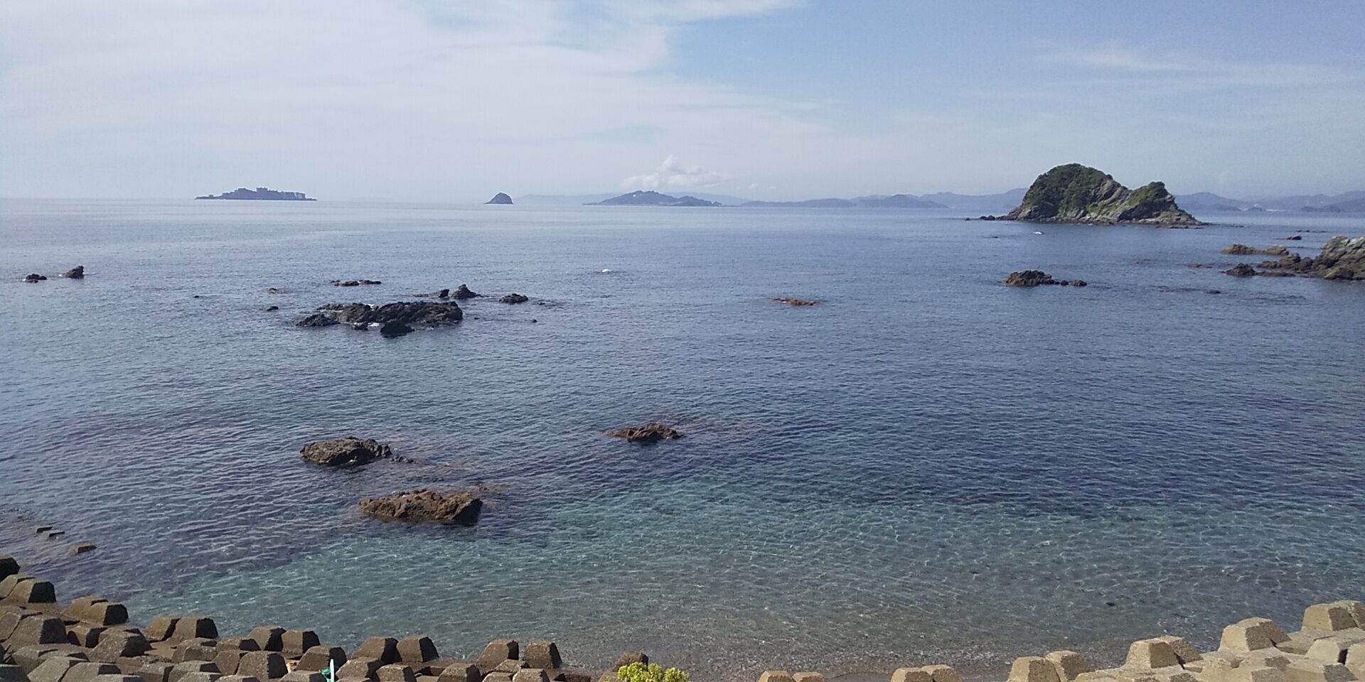 訪問時点では九州北部は梅雨の真っただ中でしたが、梅雨の中休みに当たり、青空と真っ青な五島灘が奇麗でした。