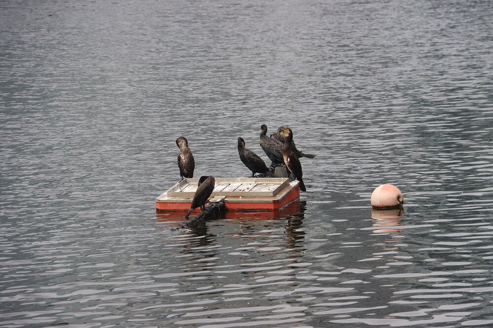 横浜・西区の高島付近が縄張りと思われるカワウ。