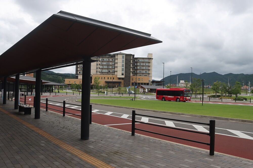 西九州新幹線開業と同時に出来た新しい駅で、駅前には広くてきれいなバスターミナルやタクシー乗り場などが整備されていて、足湯も設置されています。