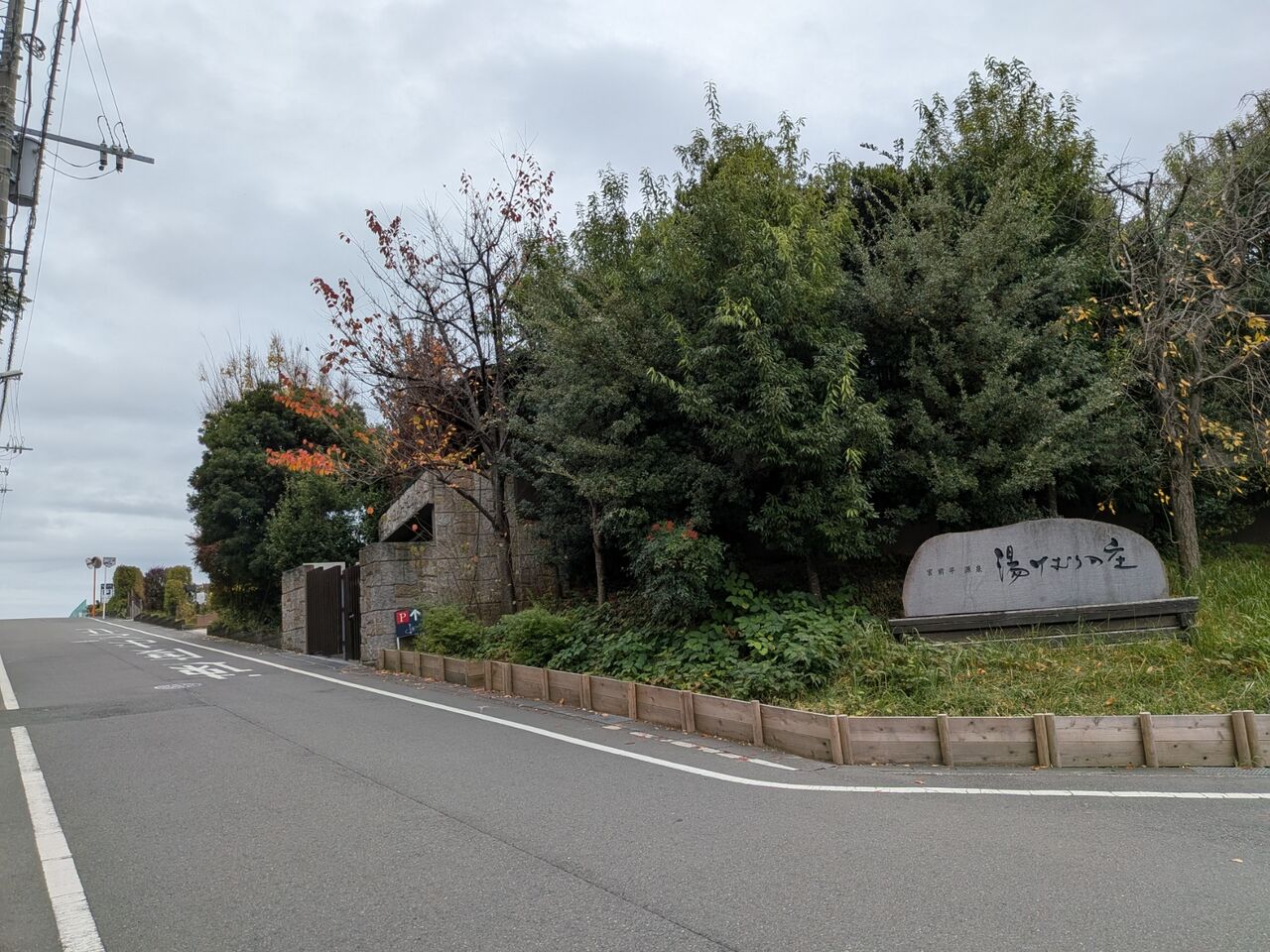 そして上り坂を少し進むと温浴施設が見えてきます。