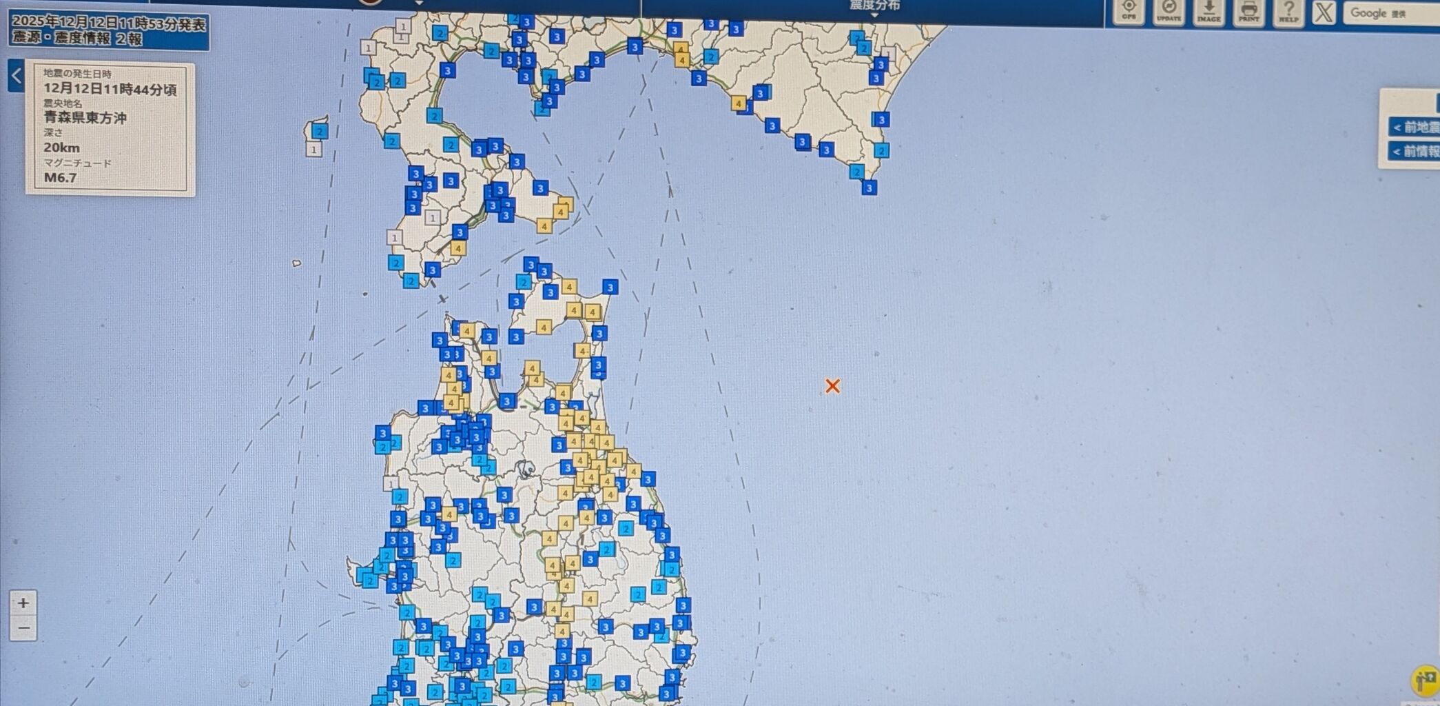 今月12日(金)11時44分頃に起きた青森県東方沖を震源とするM6.9の地震。