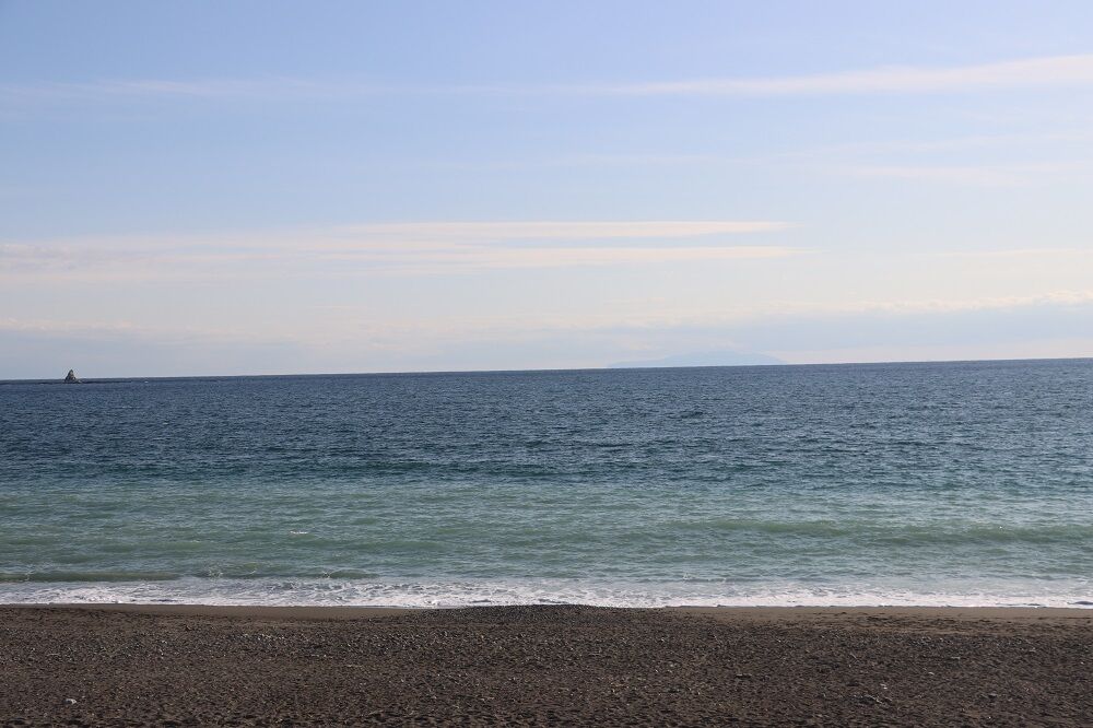沖には烏帽子岩が見え、晴れて空気が澄んでいる時は伊豆大島や富士山が見えます。
